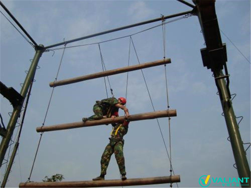 緬甸橋是由一根走繩和兩根扶繩,培訓(xùn)兩個(gè)人之間相互配合,兩人要相互幫助同共從起點(diǎn)走到終點(diǎn)。