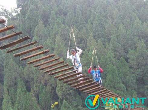 緬甸橋是由一根走繩和兩根扶繩,培訓(xùn)兩個(gè)人之間相互配合,兩人要相互幫助同共從起點(diǎn)走到終點(diǎn)。